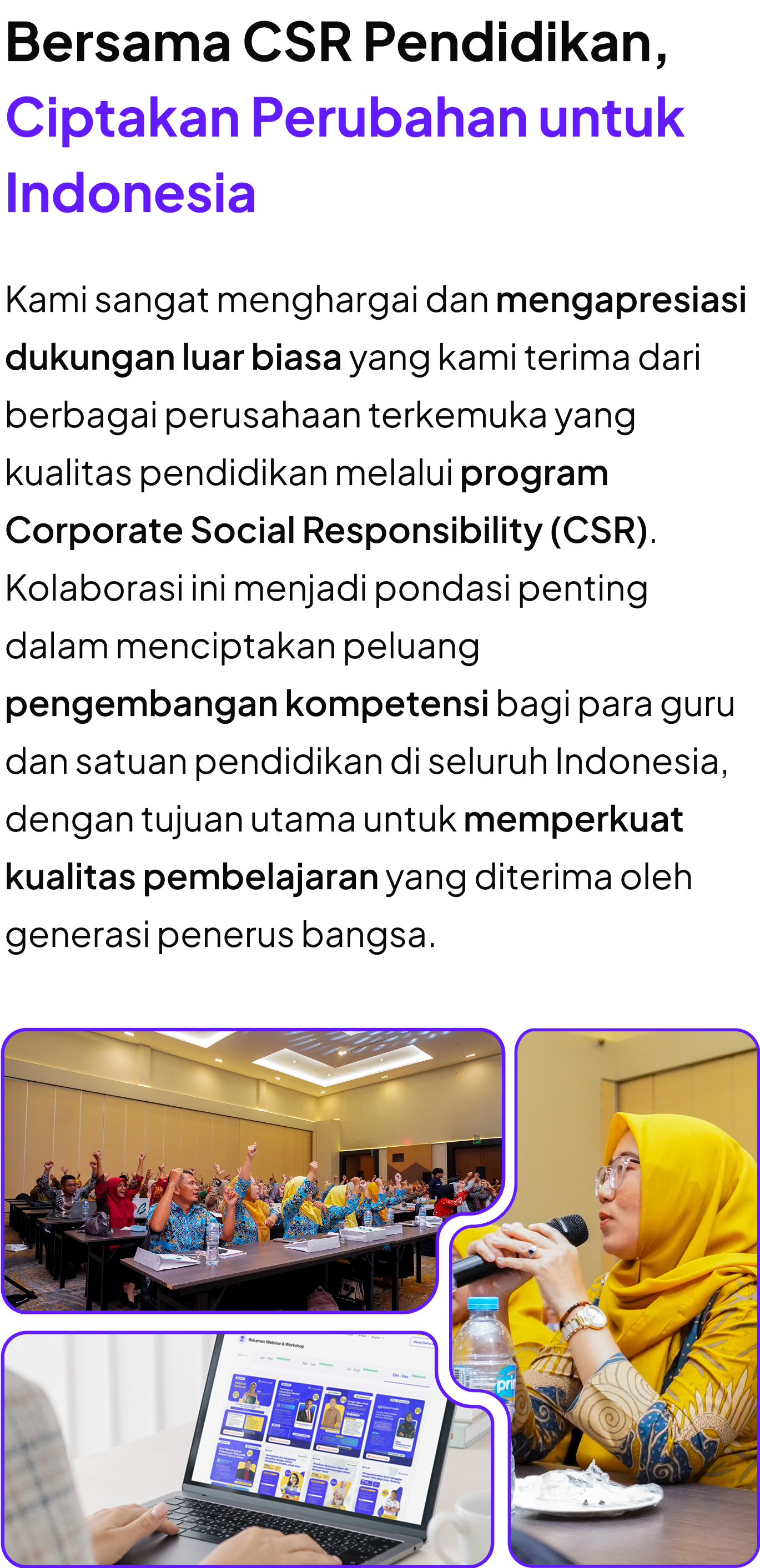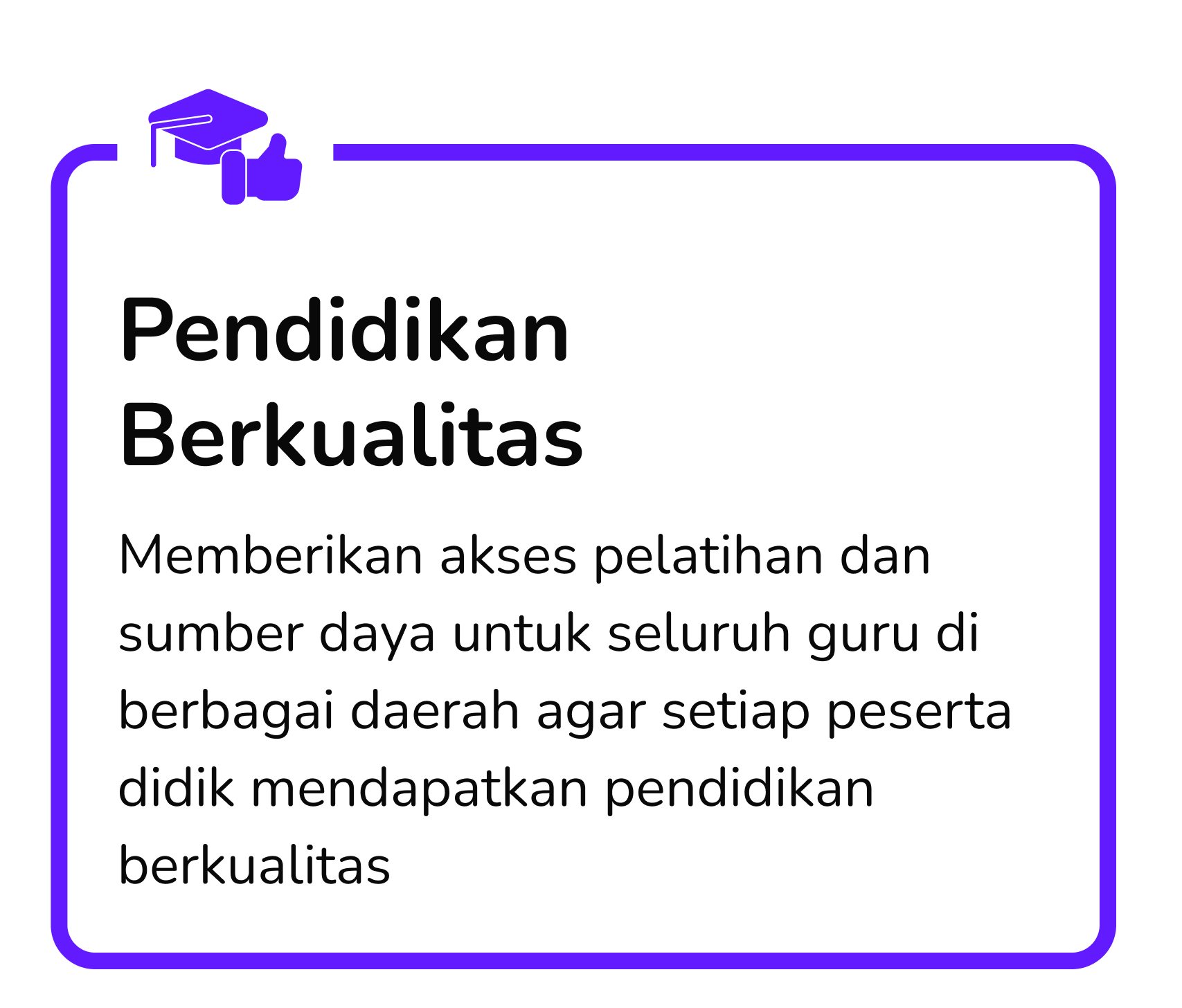 Selaras dengan komitmen dan fokus dalam memacu transformasi pendidikan di Indonesia melalui pengembangan kompetensi para guru. GuruInovatif.id telah mendukung guru di 38 provinsi di Indonesia untuk meningkatkan kompetensi sehingga dapat menyampaikan pengajaran yang lebih efektif, inovatif, dan adaptif kepada peserta didiknya.