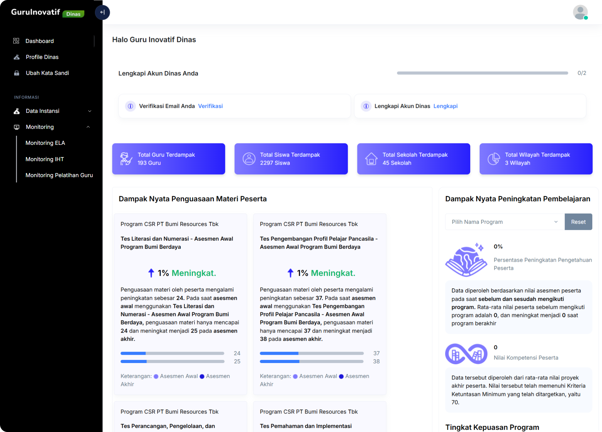 Guru Inovatif akan membantu dinas dalam merumuskan kebijakan sekolah dengan tepat dan cermat melalui pemantauan aktivitas sekolah.