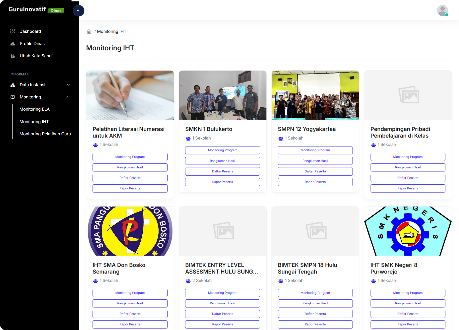 Guru Inovatif telah dipercaya puluhan Dinas di Indonesia. Tingkatkan Kualitas Pendidikan pada Sekolah yang Anda kelola dengan bergabung dengan Guru Inovatif Secara Gratis.