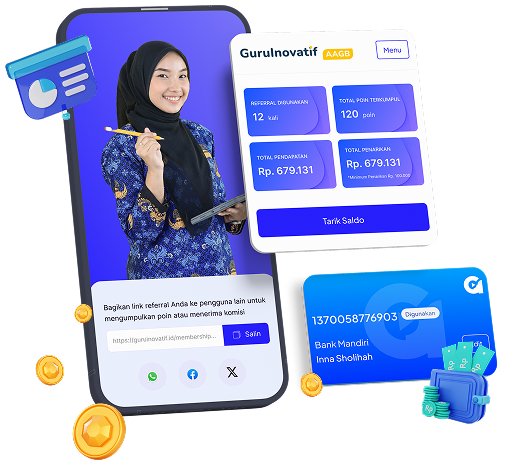 Dengan membagikan link referral Anda kepada rekan untuk melakukan transaksi pembelian membership Guru Inovatif, Anda akan mendapatkan keuntungan berupa penambahan poin (untuk memenangkan liburan ke Bali tanpa diundi) maupun komisi dari penjualan yang dilakukan.