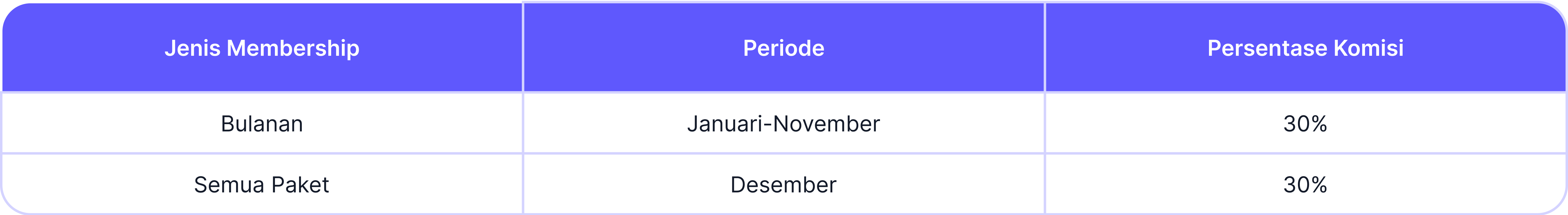 Dapatkan komisi sebesar 30% dari setiap penjualan membership yang berhasil Anda lakukan.