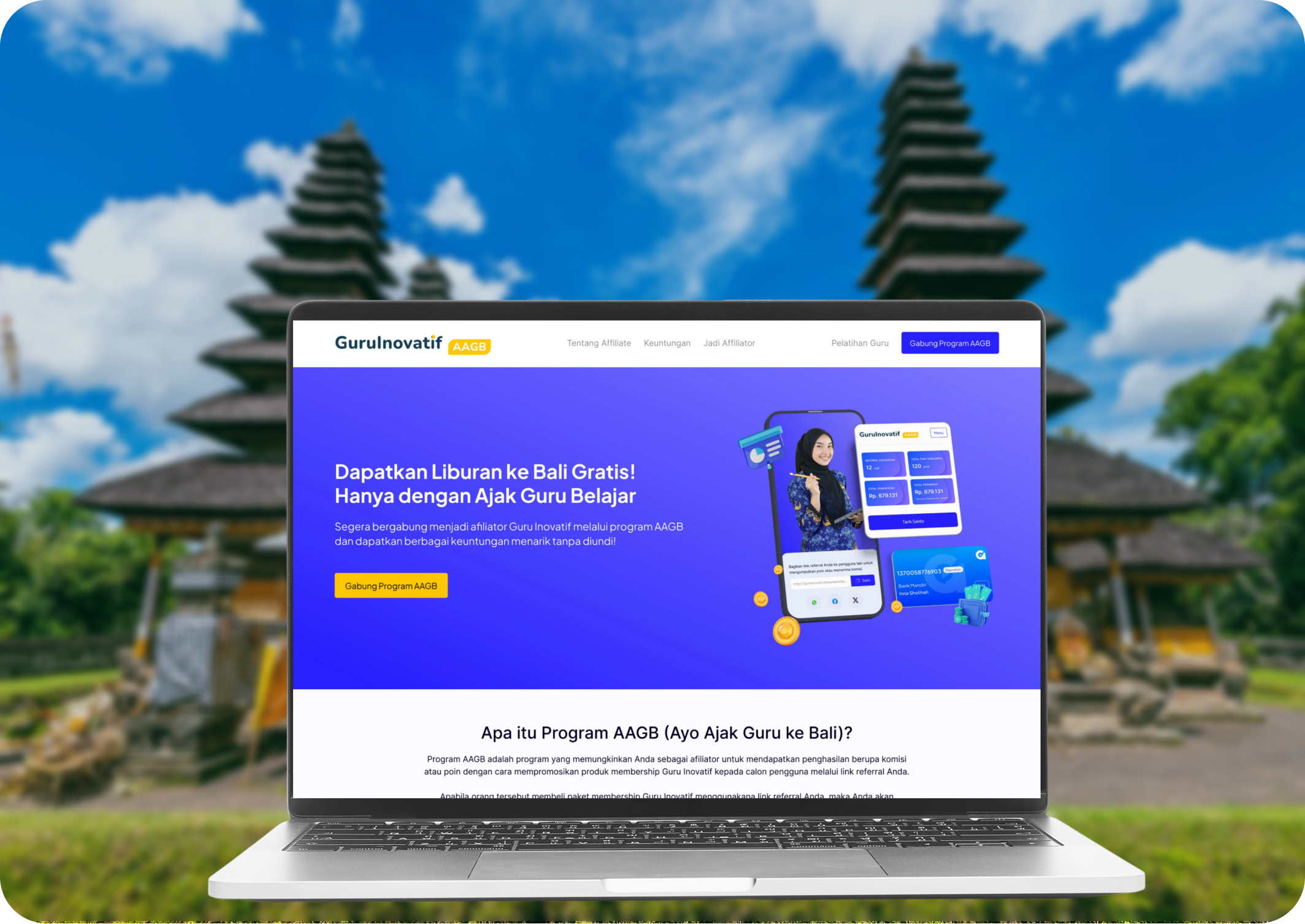 Segera bergabung menjadi afiliator Guru Inovatif melalui program AAGB (Ayo Ajak Guru ke Bali) dan dapatkan liburan gratis ke Bali dan uang tunai komisi tanpa diundi!