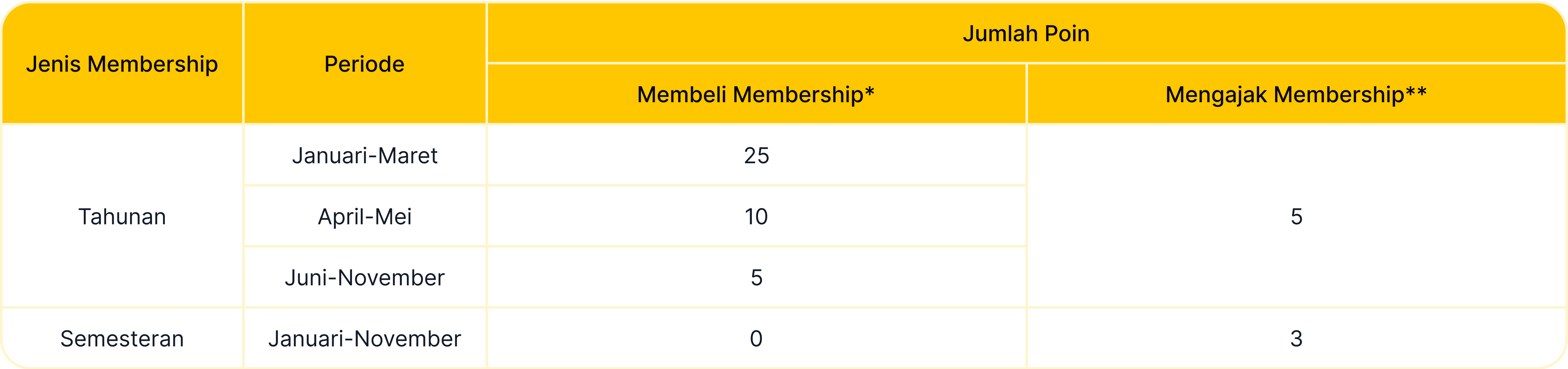 *Jika membeli membership menggunakan akun Anda, maka Anda akan mendapatkan poin sesuai dengan yang tertera di tabel